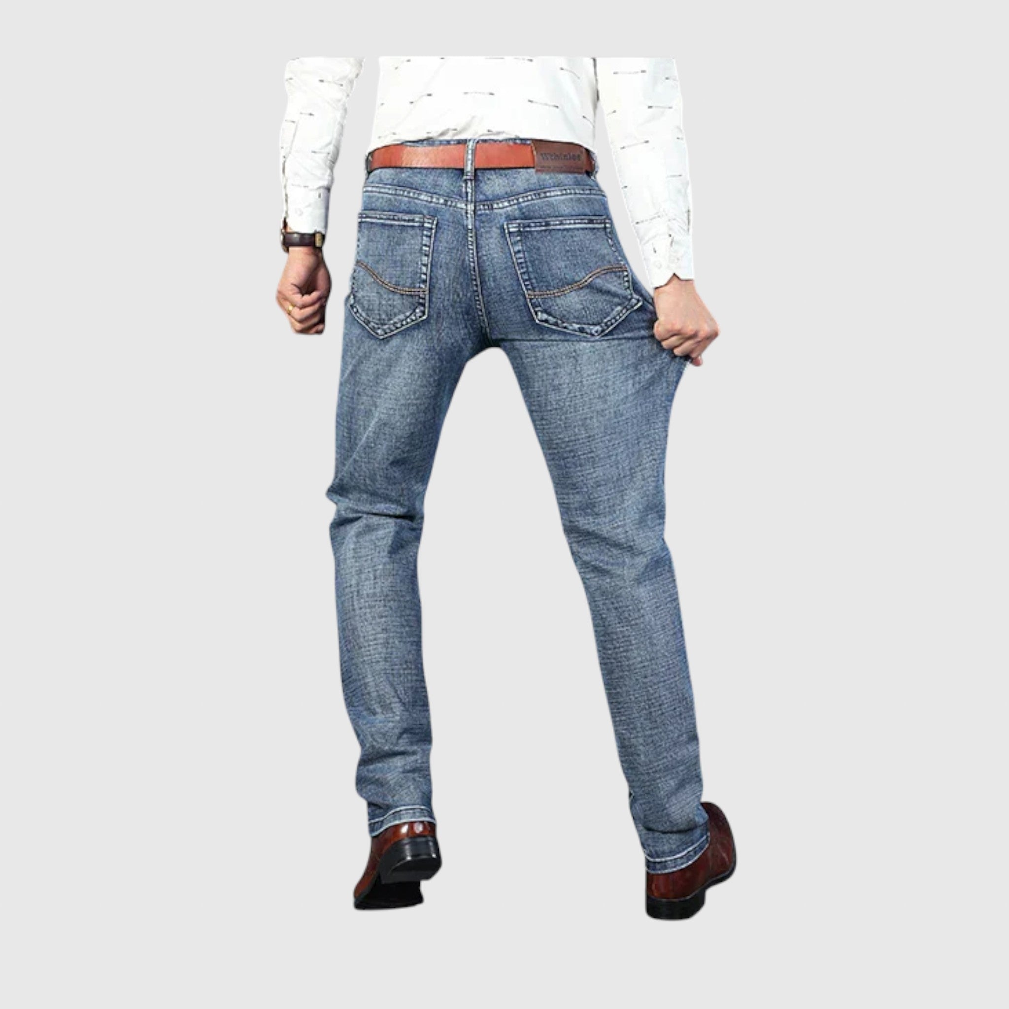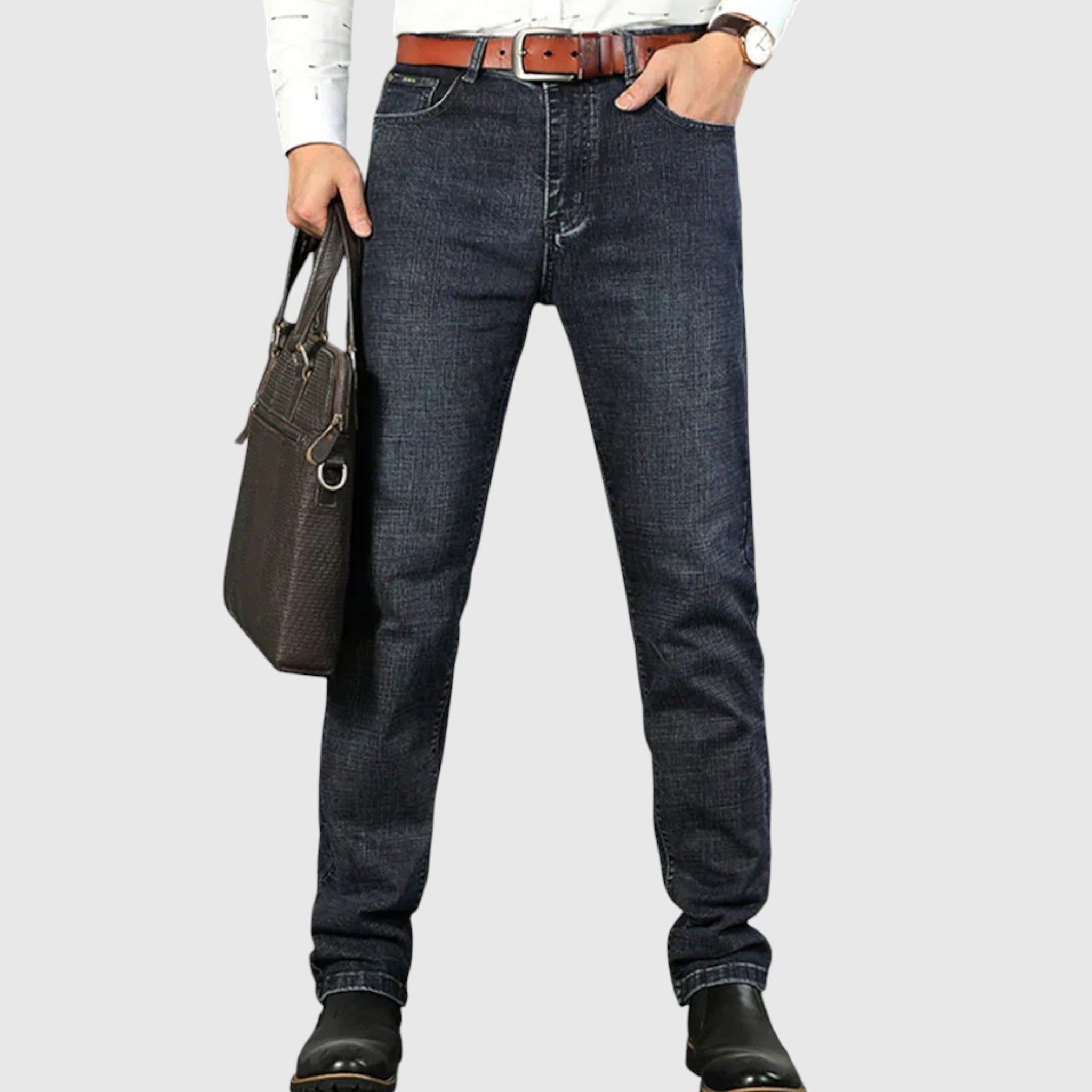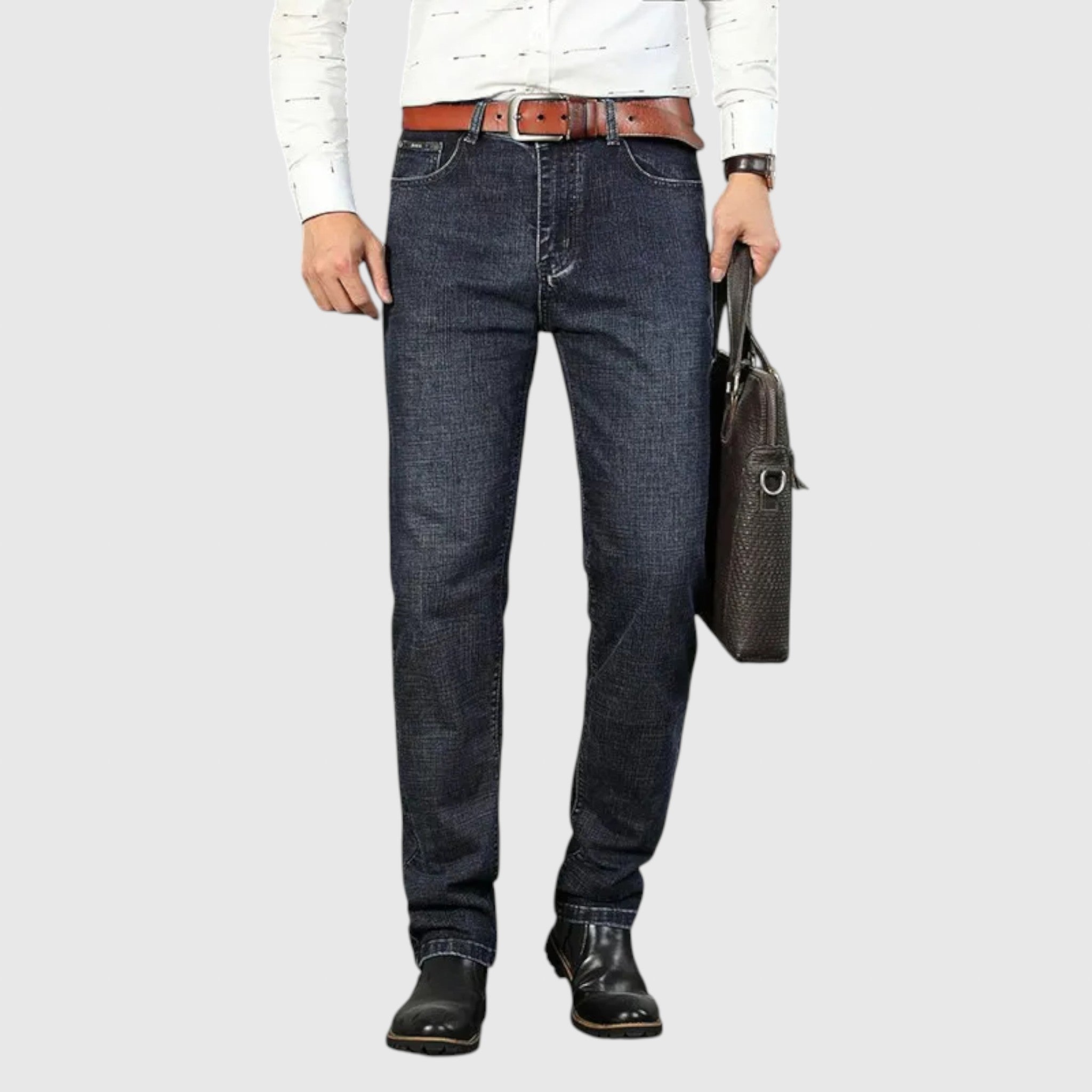 Denim Business traperice dizajnirane su za muškarce koji žele strukturu poslovne odjeće s udobnošću traperica. Izrađene od visokokvalitetnog traper materijala, nude uredan i krojen izgled s izdržljivošću i udobnošću klasičnih traperica – idealne za neformalno radno okruženje ili za stilsko svakodnevno nošenje.