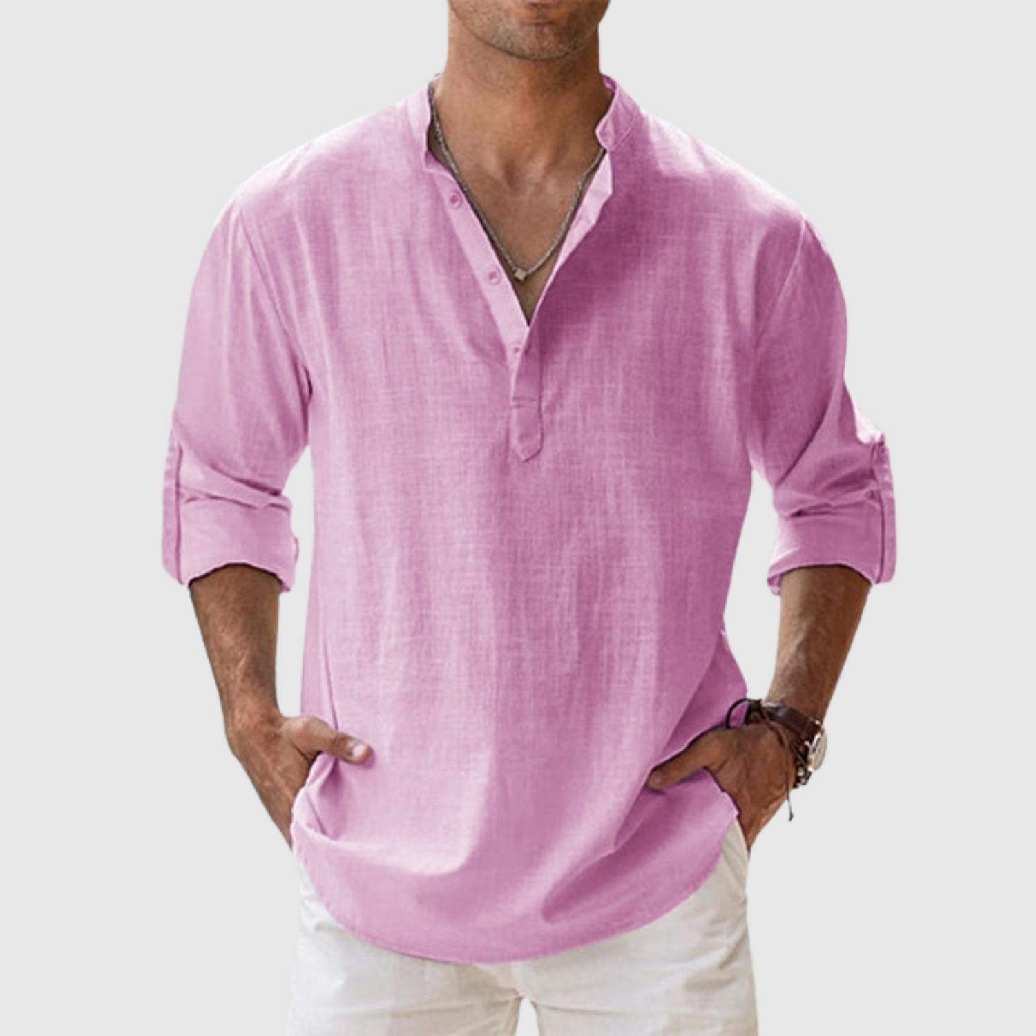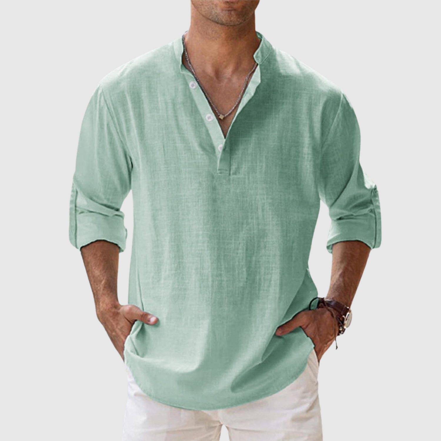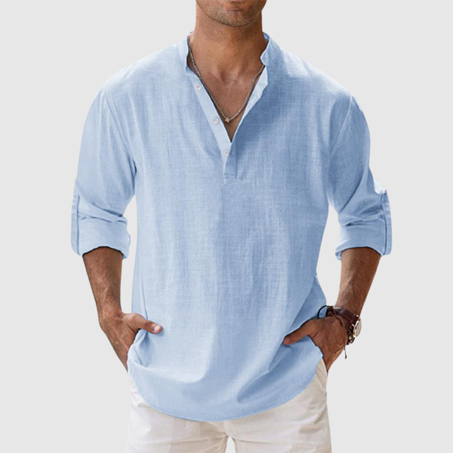 Naša lanena košulja dizajnirana je za muškarce koji žele svjež, moderan izgled bez žrtvovanja udobnosti. Zahvaljujući ležernom kroju i svestranom dizajnu, idealna je i za šetnje plažom i za ležerni urbani stil. Lagan i prozračan materijal pruža udobnost tijekom cijelog dana, dok otvoreni dizajn leđa i duge, podvrnute rukave čine majicu praktičnom i bezvremenskom.