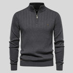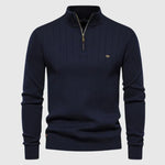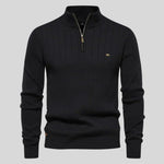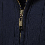• Upečatljiv "Half-Zip" s detaljem: Kontrast između duboke crne boje i zlatnog patentnog zatvarača stvara luksuzan izgled koji podiže cijeli outfit na višu razinu.